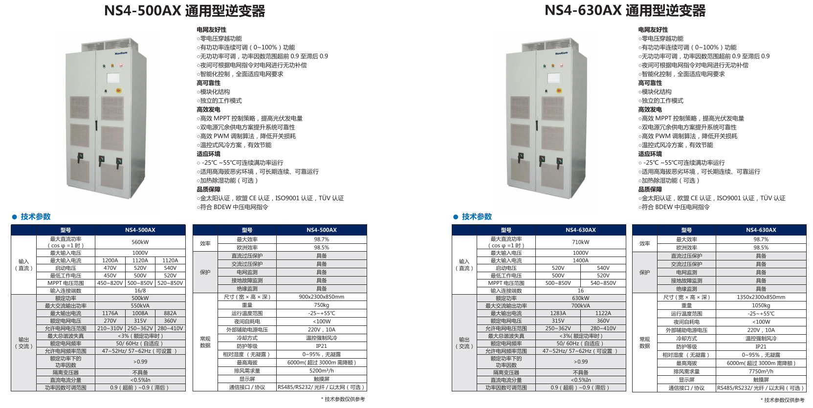1.NS4-T系列含變壓器隔離直接并網型逆變器(100kW、250kW、500kW、630kW)